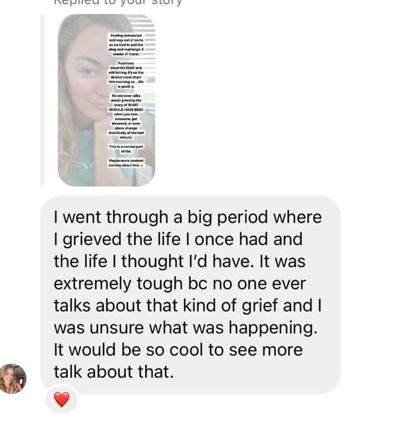 I never want you to feel like you don’t “deserve” to grieve. Grief is a natural response to loss, and while it is often associated with the death of a loved one, that same feeling can arise from unfulfilled expectations and missed opportunities. We are often impatient to move on from this feeling when in reality we’re doing ourselves a disservice by not honoring the death and grieving process. Experiences of grief over what could have been are a valid and incredibly hard period to go through. If you’re wondering what that includes, the list is endless, but some common ones the community mentioned are: