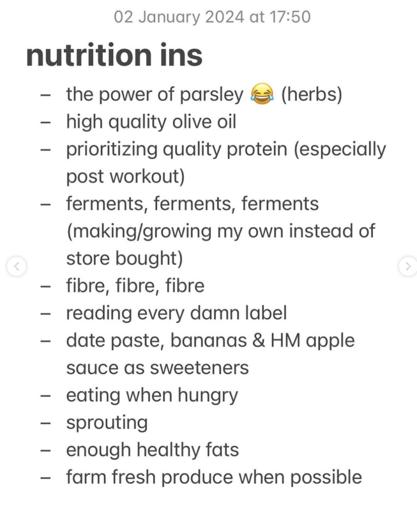 Perfection is OUT. These lists are not supposed to be strict all-or-nothing approaches. But rather a gentler nudge towards what you’d like to fill your one precious life with. Versus what you might want just a little less of this year. One of my favourite pieces of content to create last year was the very first piece of 2023 on finding your North Star and man is it still relevant this year – I hope you enjoy it. I can’t wait for another year of getting to create with and for you in our shared goal of happy gut health in 2024.